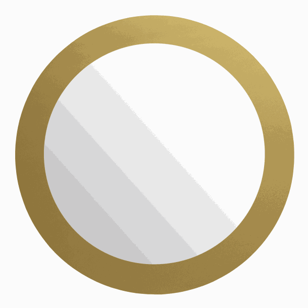 Magnetisk Cirkel spejl med 5 cm. bred, guld kant, dia 50 cm.Velegnet som badeværelsesspejl, men kan bruges alle steder, også som dekoration og opslagstavle.