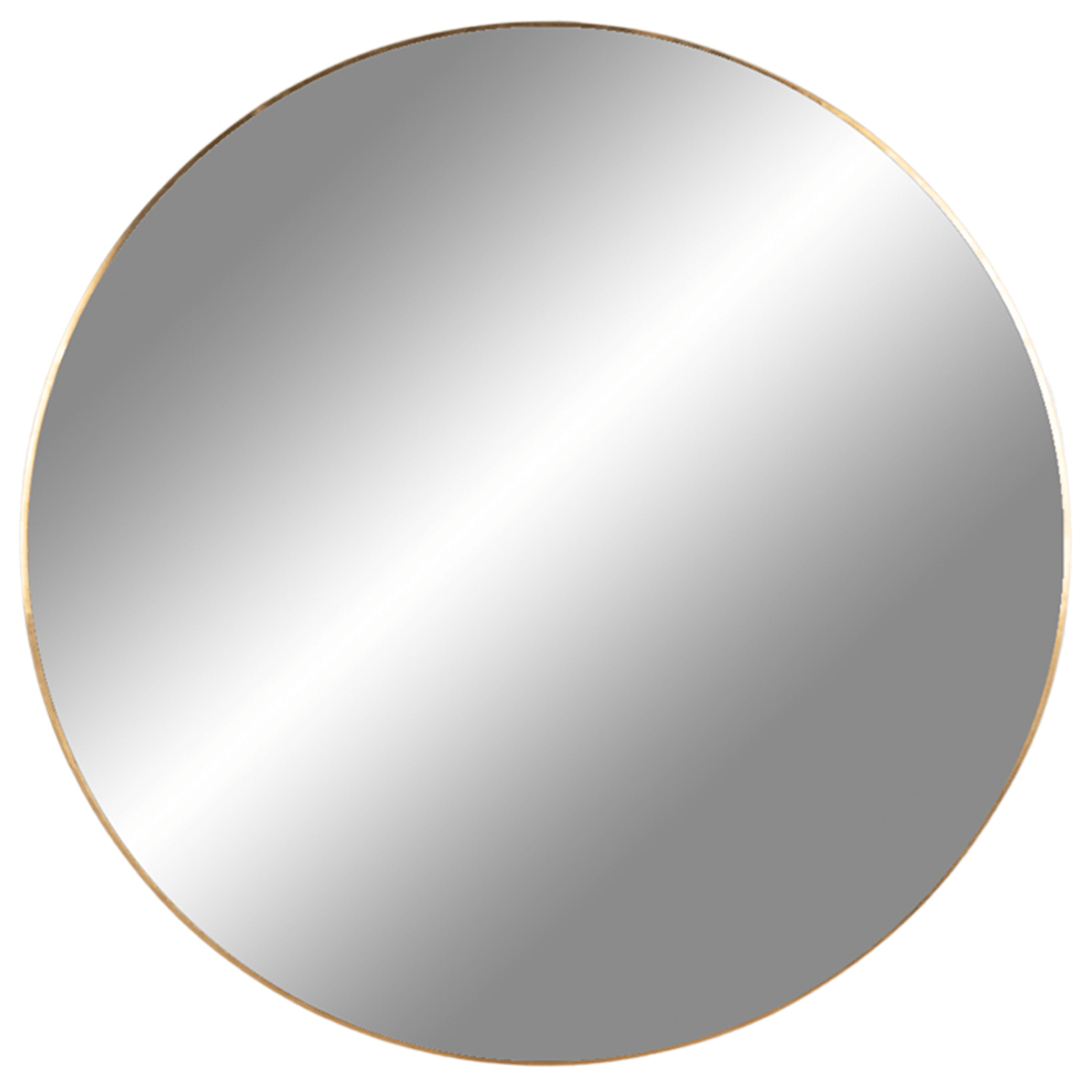 Flot, rundt spejl med smal ramme i stål med messinglook.Dia 80 cm. Højde 0,5 cm.