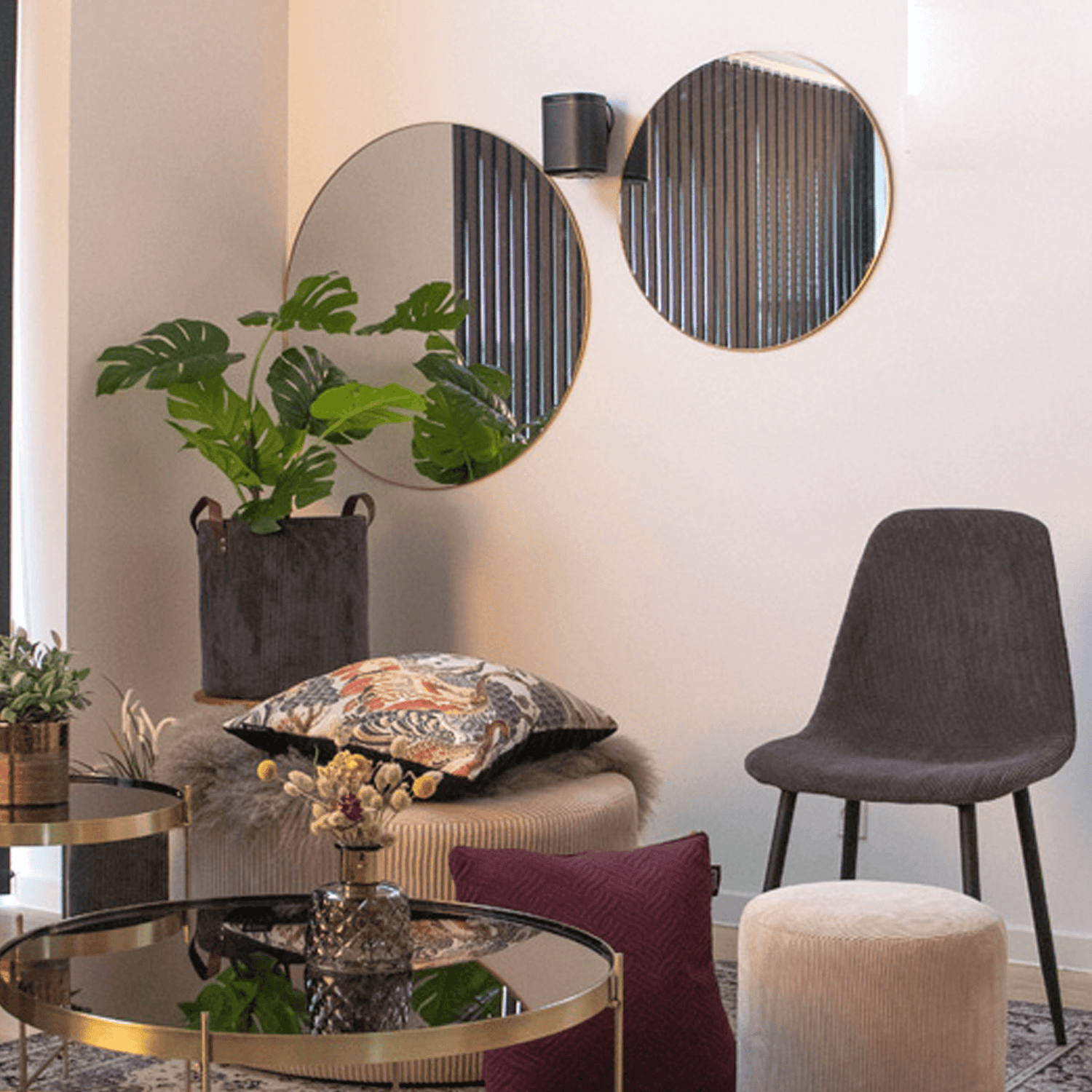 Anvendes spejlet til dekoration, f.eks. i stuen, giver det en flot effekt at kombinere runde spejle i flere størrelser, evt. også sammen med glastavler i den runde form. Find dem HER