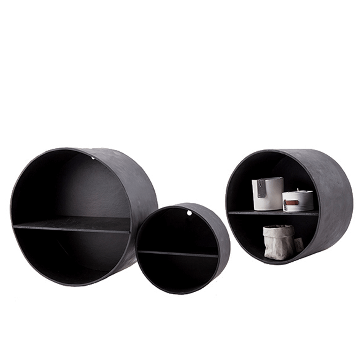 Cirkelhylder med sort cementfinish, 3 stk.