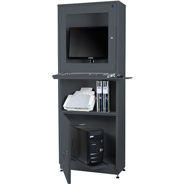 ErgoIT PC-skab / Computerskab i størrelse h x b x d = 1673 x 642 x 295mm, i mørk grå udførelse.