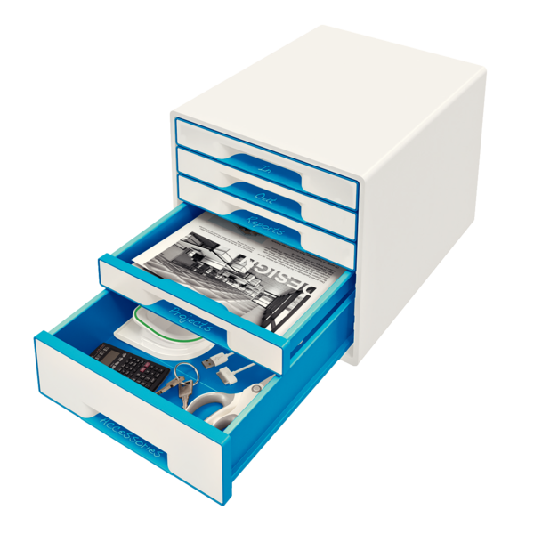 Desk cube WOW m/5-skuffer hvid/blå