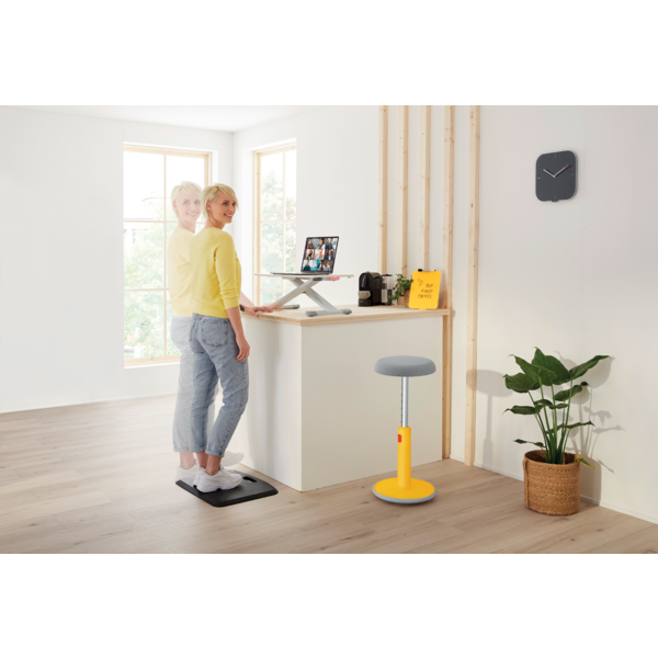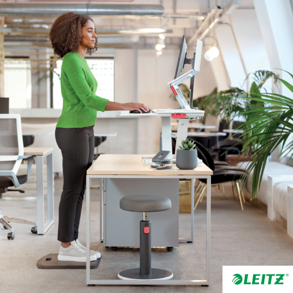 Leitz Ergo Cosy sid-stå bordkonverter giver fleksibilitet til at bevæge sig mellem siddende og stående position, mens du arbejder. Det giver muskelbevægelse, forbedrer kropsholdning og øger energiniveauet. Hurtig og let at opsætte, denne bordkonverter vil omdanne dit arbejdsområde med det samme og er robust og stabil i enhver højde. Den pneumatiske justering løfter ubesværet standen til den perfekte højde og bevæger den lige op og ned for at spare plads. Med sit minimalistiske og moderne design vil denne stilfulde sid-stå bordkonverter forbedre sundhed og velvære ved at skabe den perfekte aktive arbejdsstilling. Kombiner med andre Leitz Ergo-produkter til et indbydende og fleksibelt arbejdsområde, der holder dig i bevægelse hele dagen.