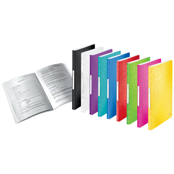 Denne høj kvalitets Displaybog i levende WOW farver med tofarveeffekt er ideel til præsentationer og organisering af dokumenter. Med 40 klare plastiklommer, der er fikseret i ryggen, kan den rumme op til 80 A4 ark (to per lomme, 80 g).