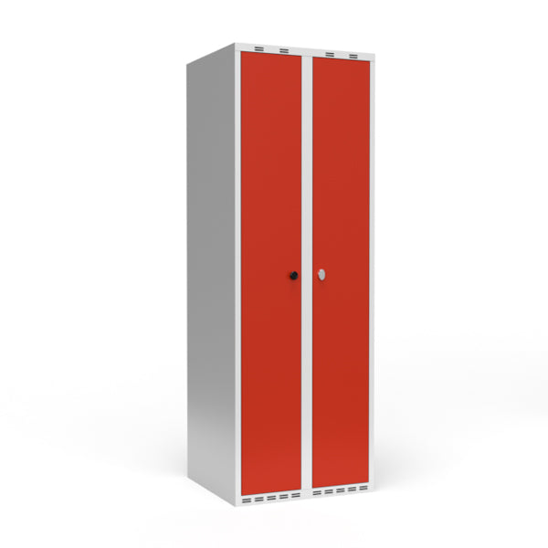 Dobbeltskab/parskab 300+300 mm Lige tag 2-søjlet Parvis lås Rød dør Greb for hængelås