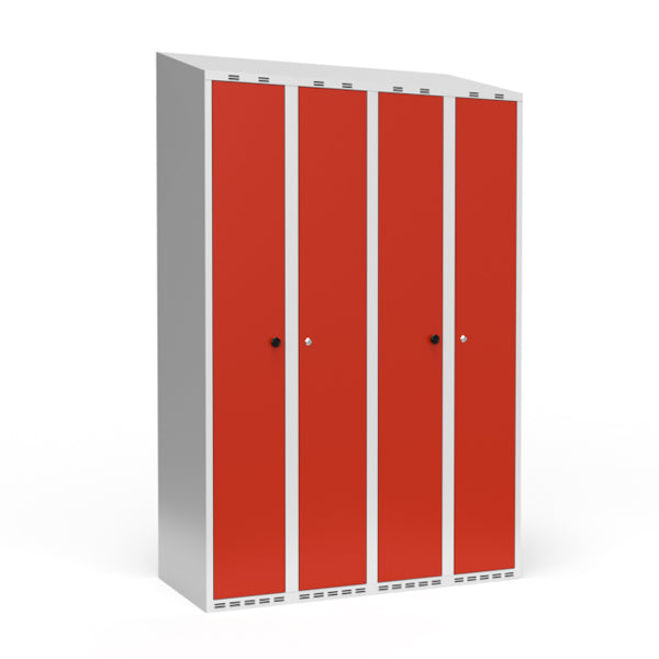 Dobbeltskab/parskab 300+300 mm Skråt tag 4-søjlet Parvis lås Rød dør Greb for hængelås