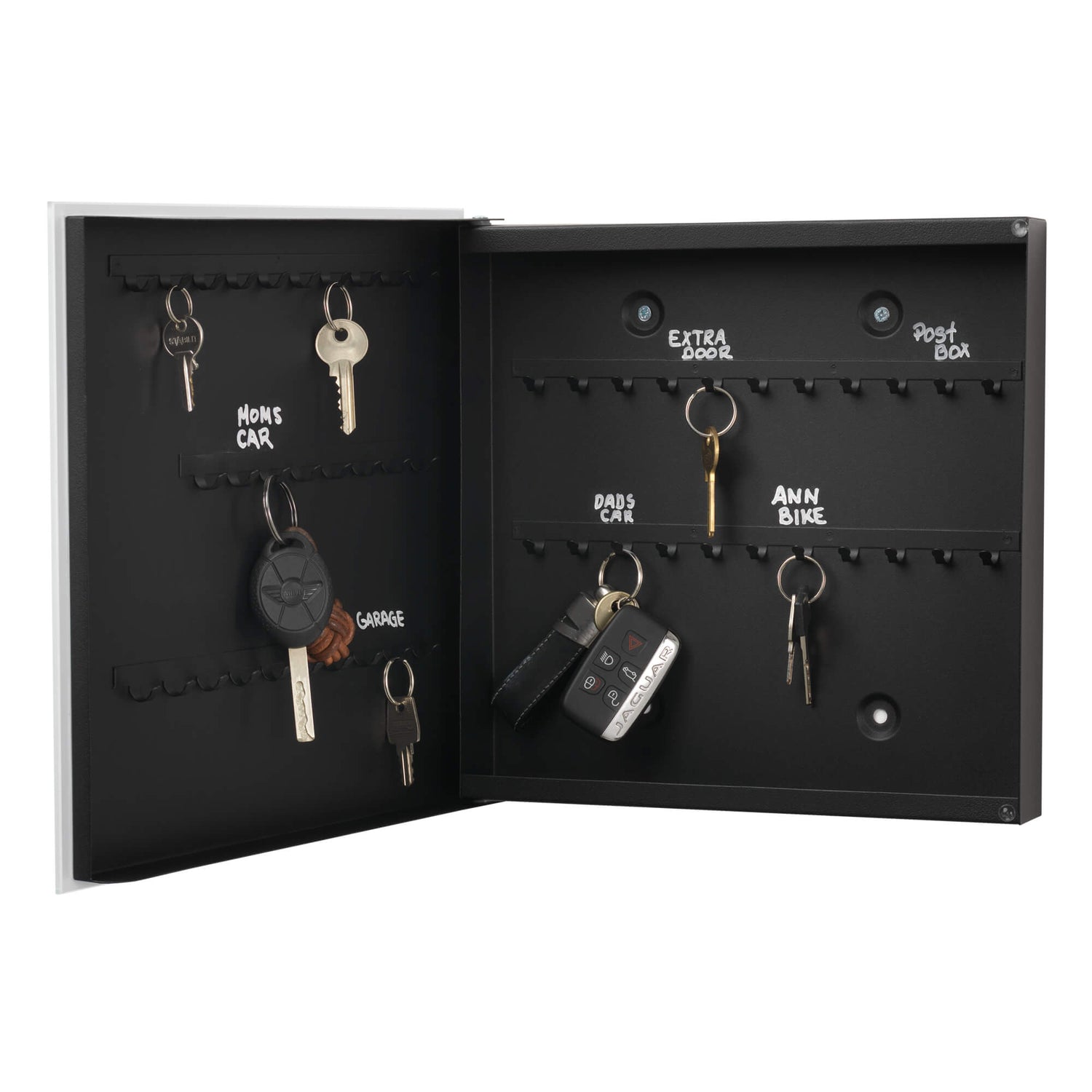 Nøgleskabet har plads til op til 50 nøgler på de indvendige kroge.