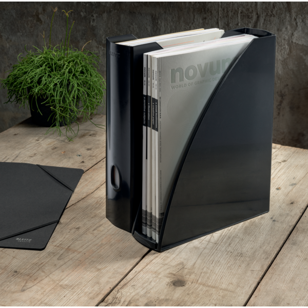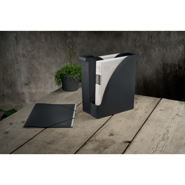 Iøjnefaldende mappe i karton i premium kvalitet. En af de mest anvendte mappetyper til dokumentbeskyttelse og transport. Med elastisklukning for at forhindre, at dokumenter glider ud. Lavet af 100% recirkuleret karton, 100% recirkulerbar og med Blå Engel miljøcertificering. Denne robuste og praktiske mappe med elastiklukning komplementerer perfekt andre produkter fra Leitz Recycle-serien og er lavet til at holde. Moderne og stilfulde kontorartikler, som vil passe ind på kontoret og i hjemmet.