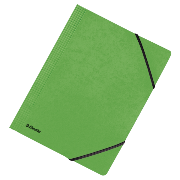 Indstiksmappe med elastikbånd-lukning i klare farver til praktisk opbevaring af dokumenter.