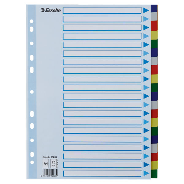 Faneblade i solide farvekombinationer giver dig den perfekte løsning til nem og effektiv organisering. Forbladet er udstyret med plastforstærket hulstribe, som sikrer ekstra holdbarhed, og store skriveområder, der gør det nemt at beskrive indholdet.