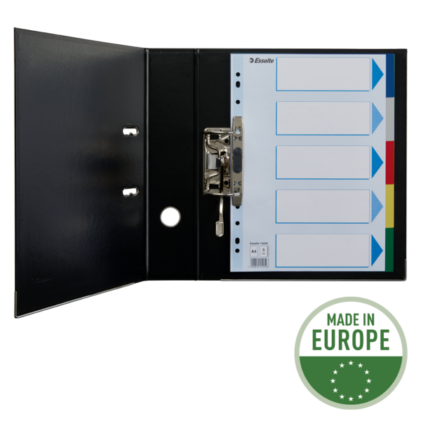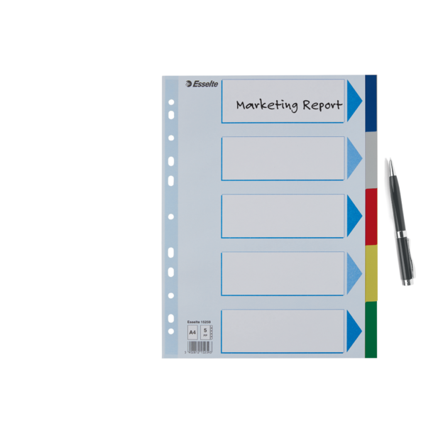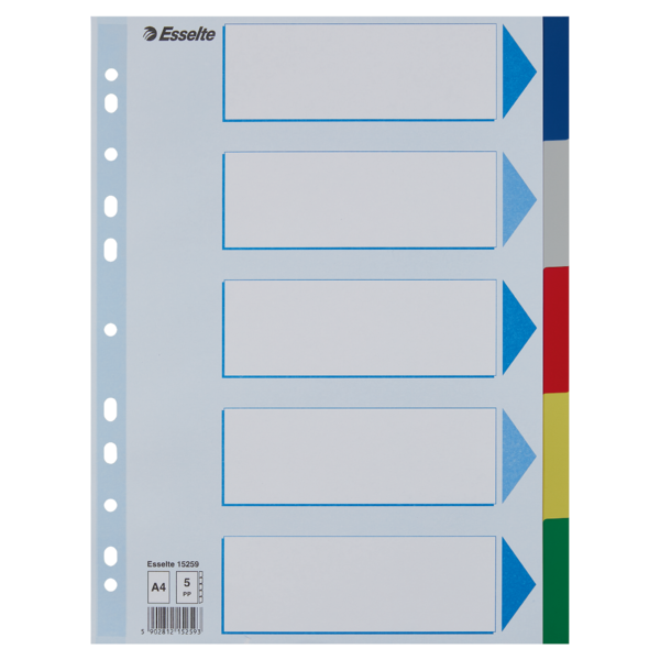 Oplev optimal organisering med vores kvalitetsfaneblade i solide farvekombinationer. Disse faneblade er designet med et plastforstærket forblad, der har store skriveområder for nem og klar beskrivelse af dit indhold.