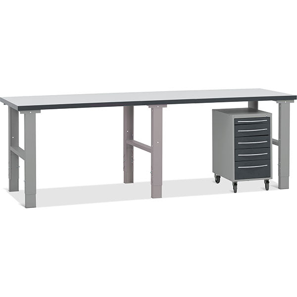 Filebænk - med skuffesektion på hjul (5 skuffet) 2500x800 mm LxD