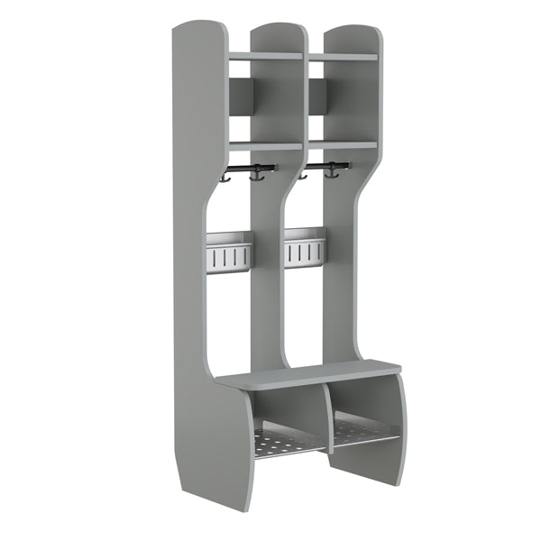 Garderobeindretning til gulvplacering i grå laminat udførelse, med bredde 620 mm beregnet til 2 garderobepladser.