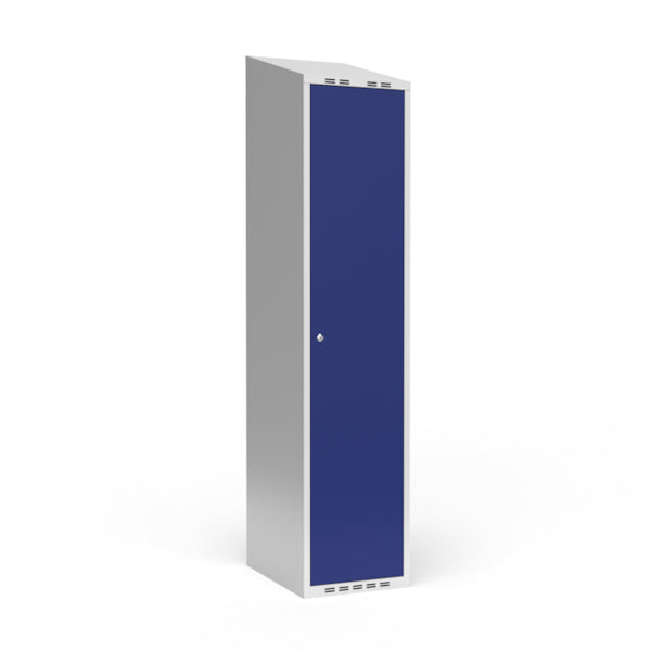Garderobeskab 1x400 mm Skråt tag 1 rum i højden Blå dør Cylinderlås