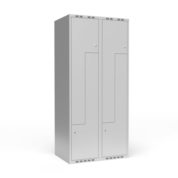 Garderobeskab 2x400 mm lige tag, 2-delt søjle Lys grå Z-dør m/cylinderlås
