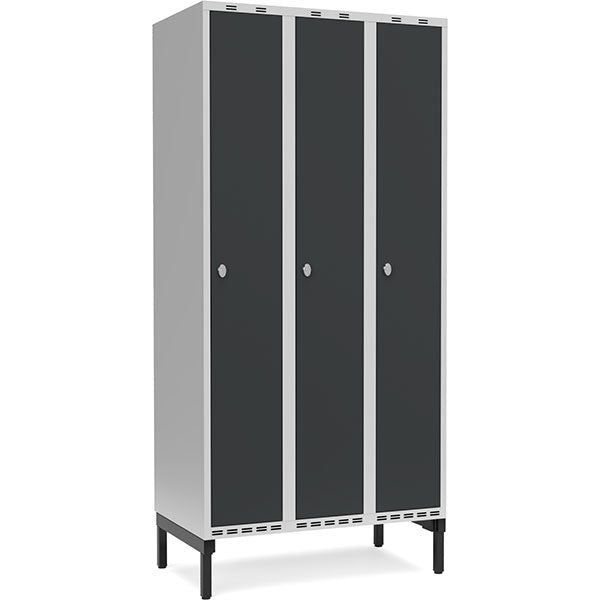 Garderobeskab 3x300mm m/lige tag, antracit dør med greb for hængelås og benramme
