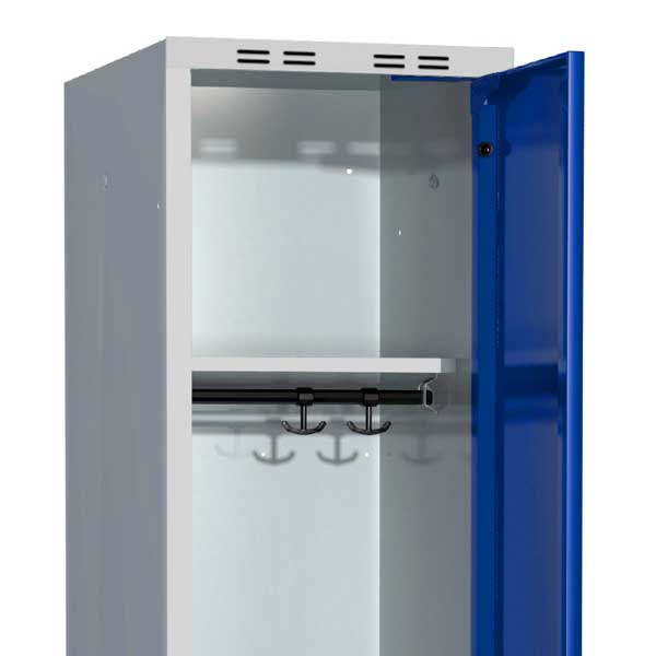 Skabet er udstyret med cylinderlås på den blå dør.