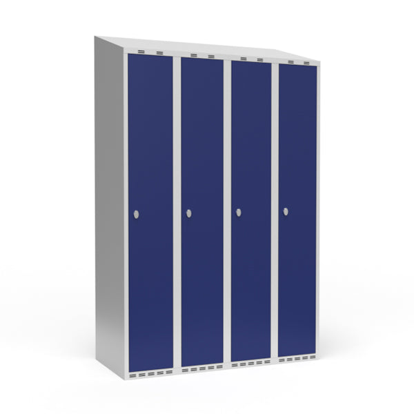 Garderobeskab 4x300 mm Skråt tag 1 rum i højden Blå dør Greb for hængelås
