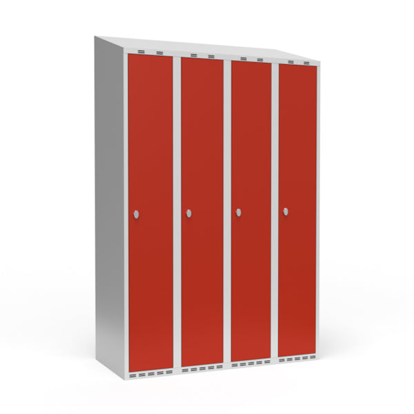 Garderobeskab 4x300 mm Skråt tag 1 rum i højden Rød dør Greb for hængelås