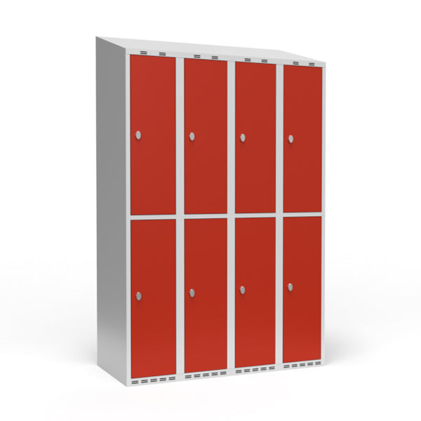 Garderobeskab 4x300 mm Skråt tag 2 rum i højden Rød dør Greb for hængelås