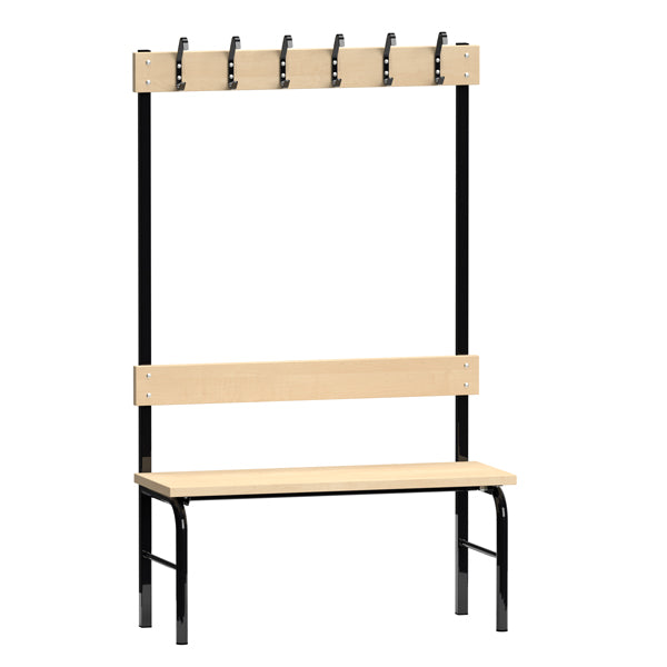 Garderobestativ Enkeltsidet, sort stel og bænksæde i birk, bredde 1000 mm