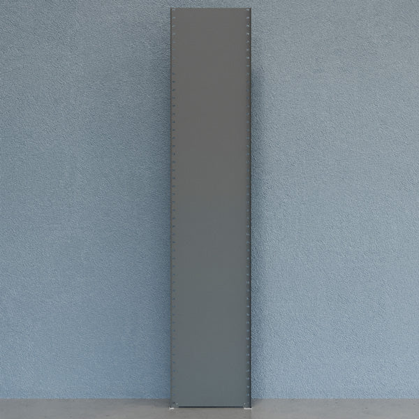 Lukket gavl til V06 lagereol højde 2500 mm med hyldedybde 500 mm. Gavlen består af 1 stk. komplet, lukket reolgavl med fodplader, der fordeler belastningen fra reolen.