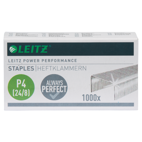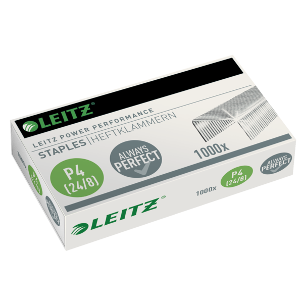 24/8 stærk stål hæfteklammer. Brug sammen med Leitz hæftemaskiner for optimal ydelse.