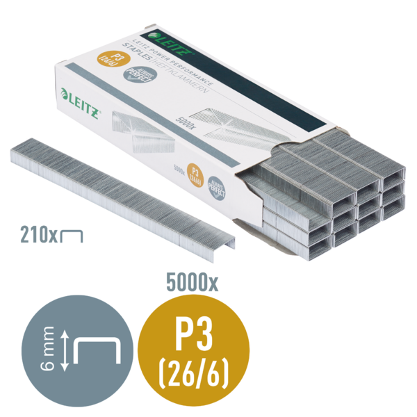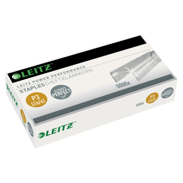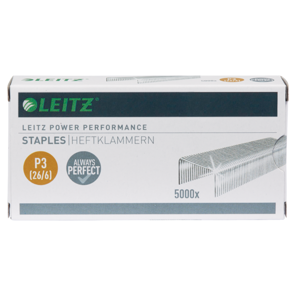 Oplev kvaliteten med Leitz Ekstra kraftige 26/6 hæfteklammer, designet til optimal ydeevne med din Leitz hæftemaskine. Disse premium klammer kan hæfte op til 30 ark (80 g) ad gangen, hvilket sikrer effektivitet og pålidelighed.