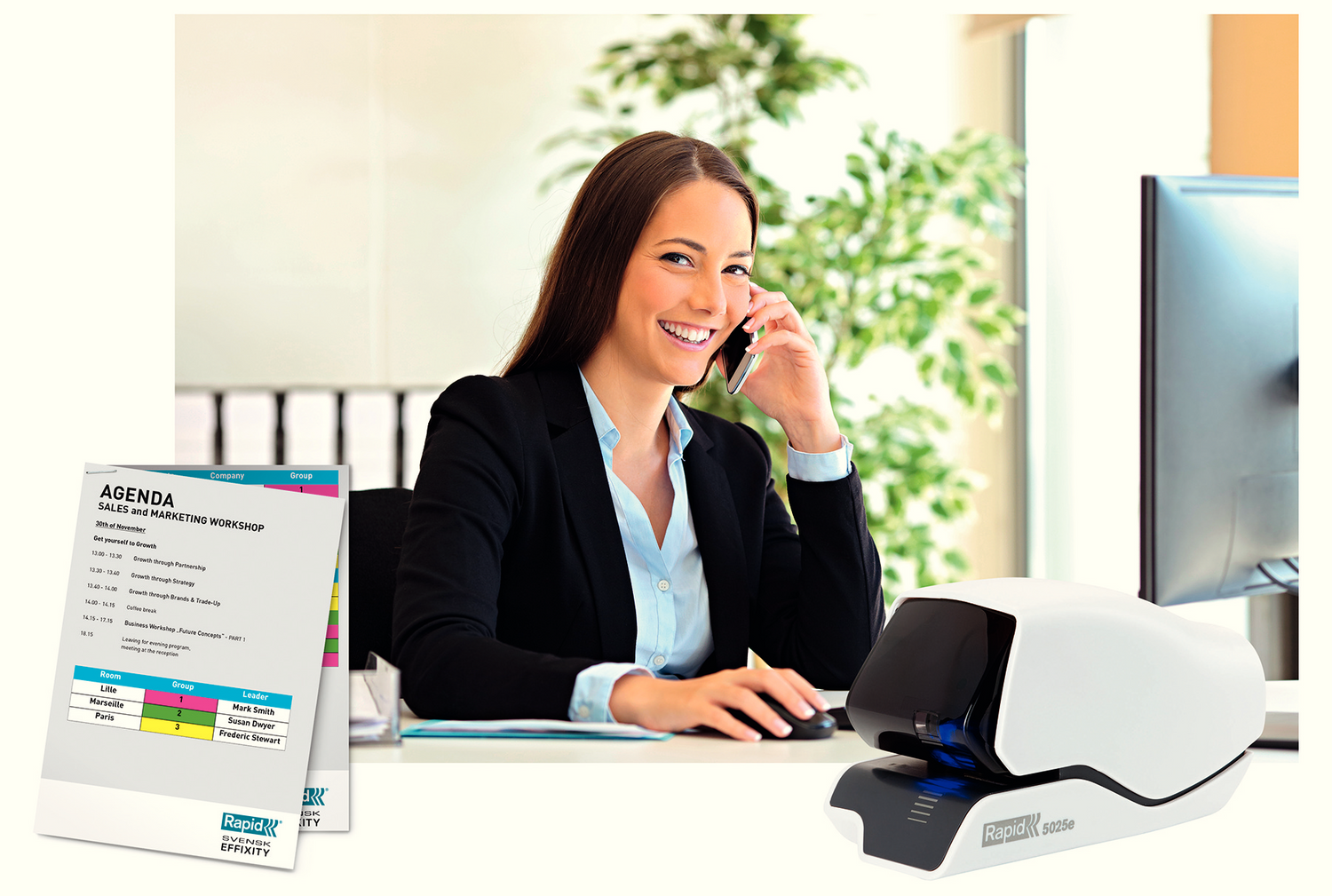 Ubesværet, patenteret kassette-hæftningsteknologi til ofte hæftningsbrug - så som hoteller, receptioner og ved kasseapparater. LED guide system viser nøjagtigt, hvor hæfteklammen kommer ud.
