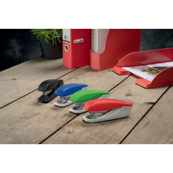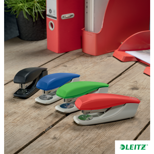 Denne iøjnefaldende hæftemaskine fra Leitz er designet til både kontor og hjem, fremstillet af 94% recirkuleret plast og 100% recirkulerbar. Med Direct Impact-teknologi og Leitz Power Performance hæfteklammer sikrer den præcis hæftning af op til 30 ark.