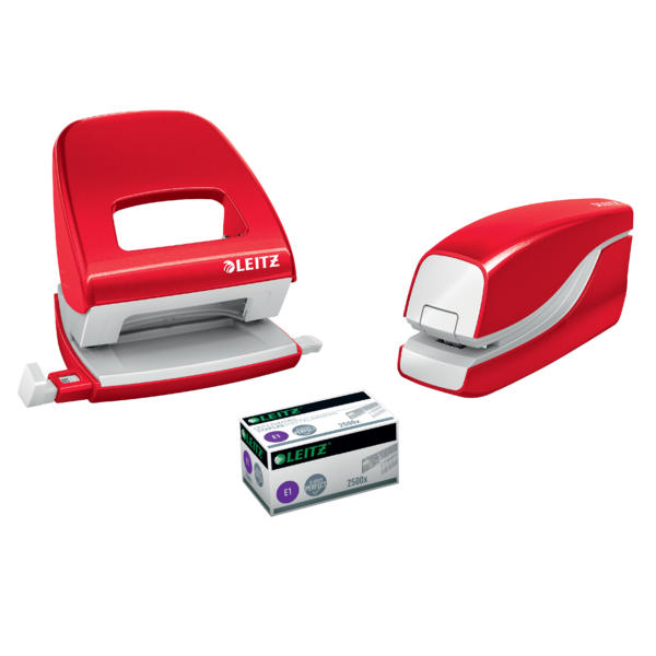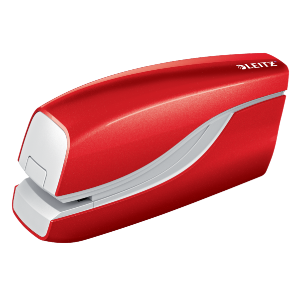 Opgrader din arbejdsplads med Leitz batteridrevet hæftemaskine i slående WOW farver. Designet til hygiejnisk og bekvem brug uden berøring, hæfter den op til 10 ark med perfektion ved hjælp af Leitz e1 hæfteklammer.