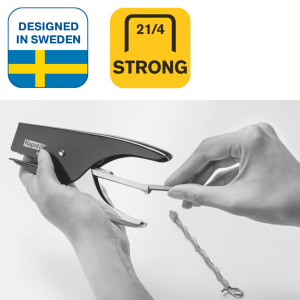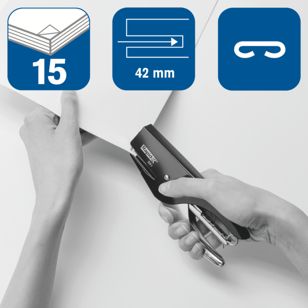 Oplev enestående effektivitet med vores gribevenlige hæftetang i et uimodståeligt retro design. Denne alt-i-stål hæftetang er ideel til både kontor-, hjem- og skolebrug, og kan nemt hæfte op til 15 ark (80 g) ad gangen.