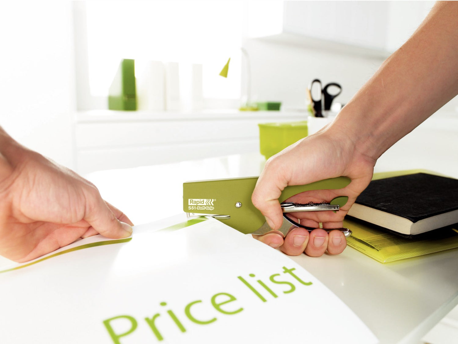 Hæftetang Rapid Supreme S51 Soft Grip, 15 ark, olivengrøn Soft grip hæftetang, opdateret version af den originale Rapid S51. Special gummibelægning for bedre komfort. Perfekt i hjemmet, skolen eller kontoret. Hæfter op til 15 ark papirer (80 g) Ergonomisk design Soft grip hæftetang med gummibelægning Traditionel ladning af klammer bagtil Brug små hæfteklammer, No. 21 42 mm indstiksdybde 5 års garanti ved brug af Rapid hæfteklammer