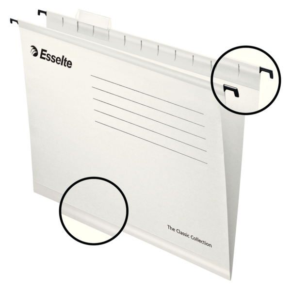Denne hængemappe fremstår som et ideelt valg for organiseret opbevaring med sin ekstraordinære holdbarhed. Forstærkningstape gør mappen 10 gange stærkere, mens de klare farver letter farvekodet arkivering.