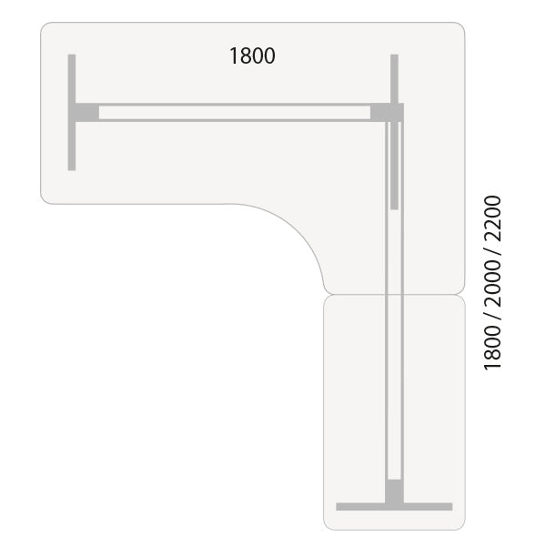 Hæve-sænkebord DNA, Lysgrå 1800x1800 mm Højre 3-ben/Sort