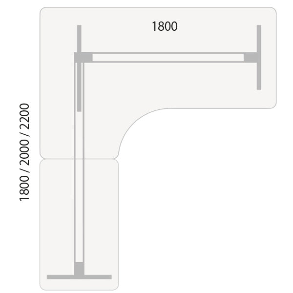 Hæve-sænkebord DNA, Lysgrå 1800x1800 mm Venstre 3-ben/Alugrå