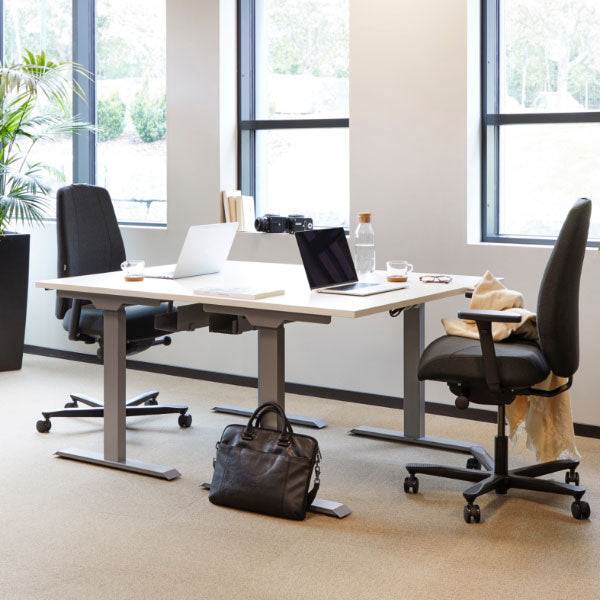 Med vores hæve-sænkebord får du en fleksibel arbejdsstation, der tilpasser sig dine behov. Det er en smart investering for din sundhed, da det fremmer en god kropsholdning og bevægelse. Skift mellem at sidde og stå med vores hæve-sænkebord og oplev en mere dynamisk arbejdsdag!