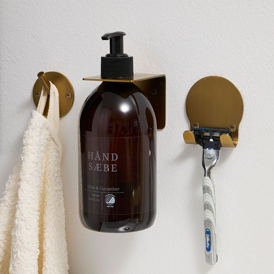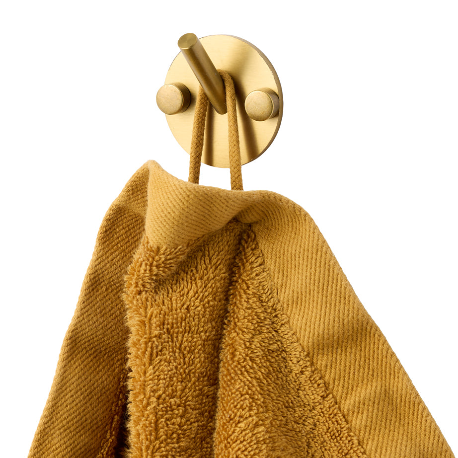 Håndklædekrogen er lavet af rustfrit stål med en børstet finish i messinglook.