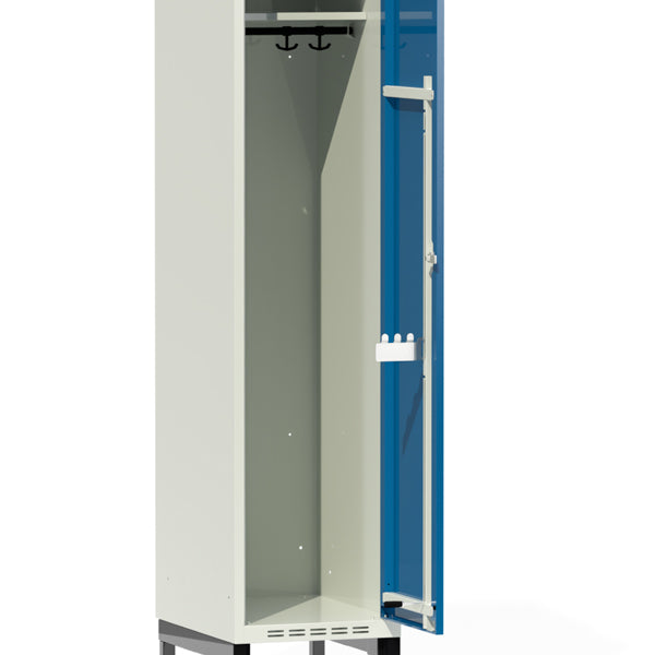 Skydegreb med bøjle, der sættes fast på indersiden af ??klædeskabet. Gør det muligt at sænke bøjlen for nemmere at hænge tøj fra lavere højde. Drejeligt skubbehåndtag. Kan eftermonteres til eksisterende skabe med en og to låger i højden. Tilpasset dør T01/S01/T02/S02 med en bredde på 300 mm.