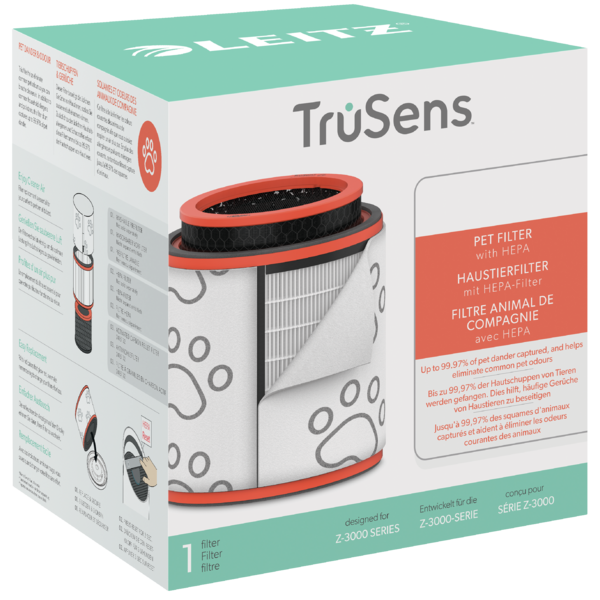 Indånd renere luft med et filter, som hjælper med at eliminere kæledyrsskæl & hår samt lugte. Kombinationsfilteret har 3 niveauer af filtrering, som er udviklet specifikt til at fjerne kæledyrslugt, hår og støv fra luften. Alt-i-et filtersystemet kombinerer et vaskbart forfilter, et HEPA filter og et to-lags kulfilter. Udover, at filteret fanger allergener og forurenende stoffer, som typisk findes i hjemmet, fanger dette tromlefilter 99,97% af luftbårne kæledyrsskæl. FIltertromlen er kernen i rensning af din luft. For at få en optimal luftrensning anbefales det at udskifte HEPA filtertromlen hver 12. måned afhængig af brug. Konvertibel med alle Leitz TruSens Z-35000/Z-3500 store luftrensere.