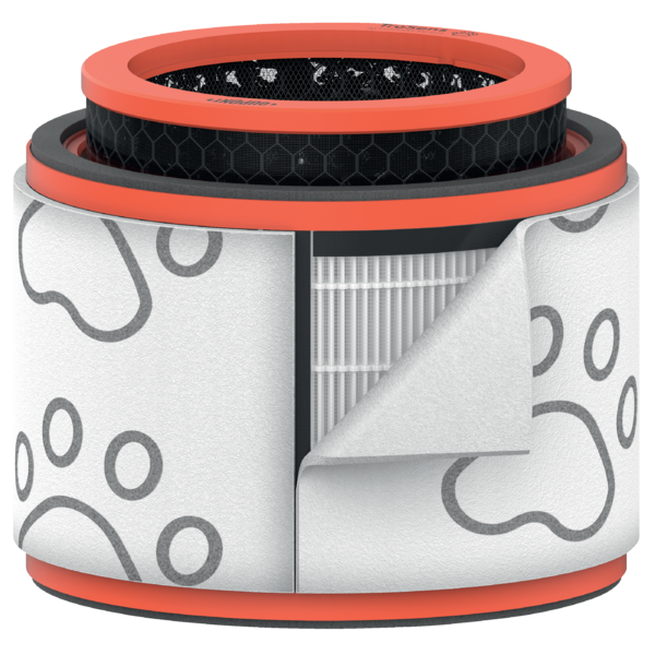 Oplev renere luft med vores avancerede kombinationsfilter, der effektivt eliminerer kæledyrsskæl, hår og lugte. HEPA-filteret, med et imponerende effektivitetsniveau på 99,97% ved 0,3 mikron, kombineres med et vaskbart forfilter og et to-lags kulfilter.