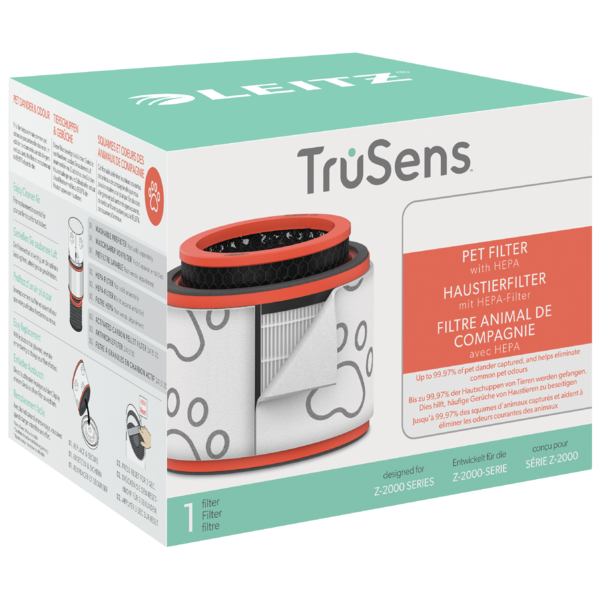 Indånd renere luft med et filter, som hjælper med at eliminere kæledyrsskæl & hår samt lugte. Kombinationsfilteret har 3 niveauer af filtrering, som er udviklet specifikt til at fjerne kæledyrslugt, hår og støv fra luften. Alt-i-et filtersystemet kombinerer et vaskbart forfilter, et HEPA filter og et to-lags kulfilter. Udover, at filteret fanger allergener og forurenende stoffer, som typisk findes i hjemmet, fanger dette tromlefilter 99,97% af luftbårne kæledyrsskæl. FIltertromlen er kernen i rensning af din luft. For at få en optimal luftrensning anbefales det at udskifte HEPA filtertromlen hver 12. måned afhængig af brug. Konvertibel med alle Leitz TruSens Z-2000/Z-2500 medium luftrensere.