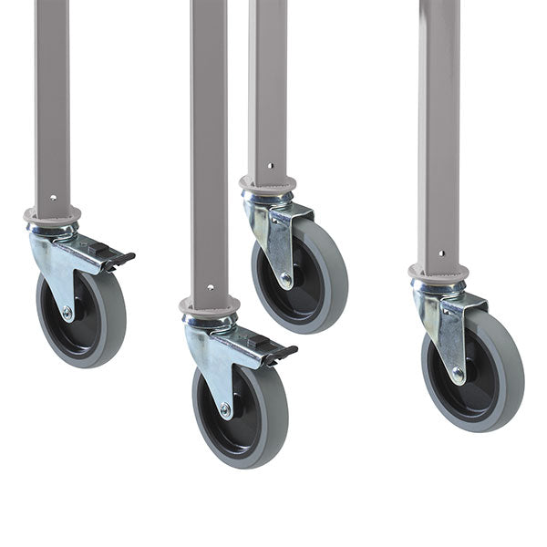 Hjulsæt tilpasset til brug på vore lette H-stel. Sættet består af 4 stk. drejelige Ø100 mm gummihjul hvoraf 2 stk. er låsbare.