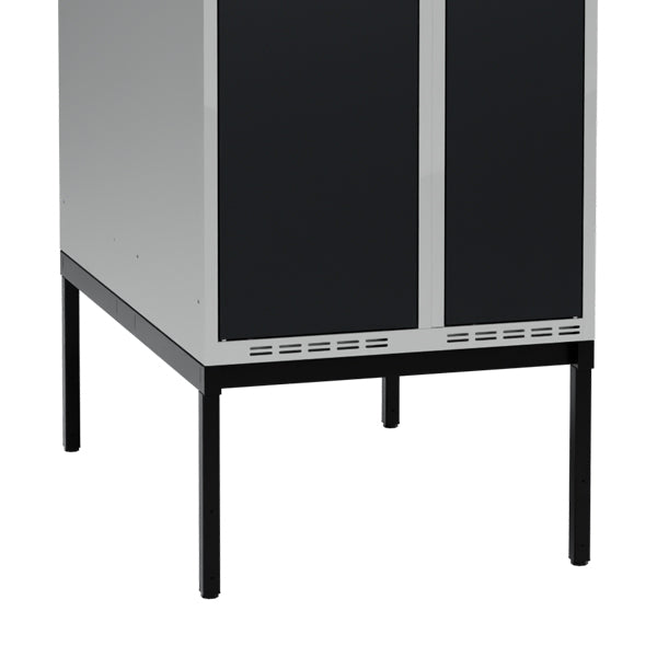 Benrammen er tilpasset skabe med 700 mm i bredden og 550 mm i dybden, beregnet til to skabe placeret ryg mod ryg i dobbeltrække.