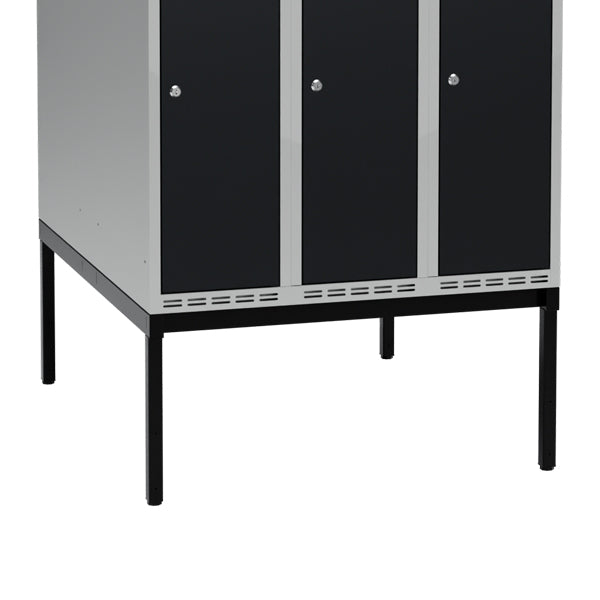 Understellet er tilpasset skabe med en dybde på 550 mm og en bredde på 900 mm, og er beregnet til to skabe placeret ryg mod ryg i dobbeltrække.