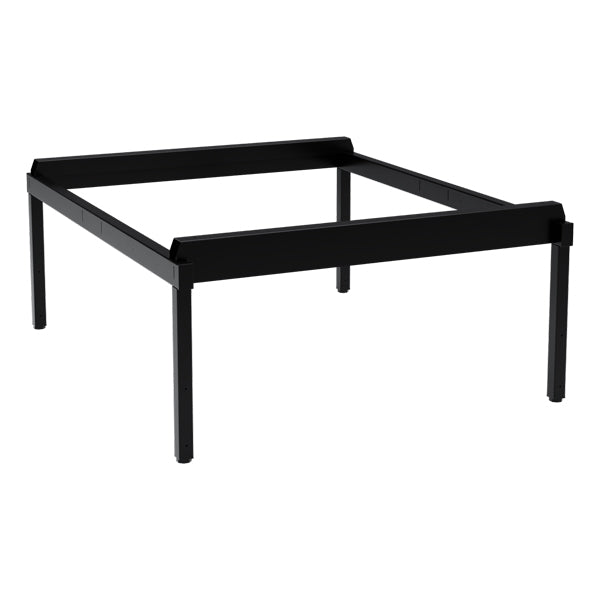 Høj benramme med en bredde på 900 mm og en dybde på 1100 mm. Benrammen leveres med justerskruer til ujævne gulve, i sortlakeret udførelse, og monteres nemt – helt uden brug af skruer. Benrammen har en højde på 320 mm, som kommer oveni skabets højde.