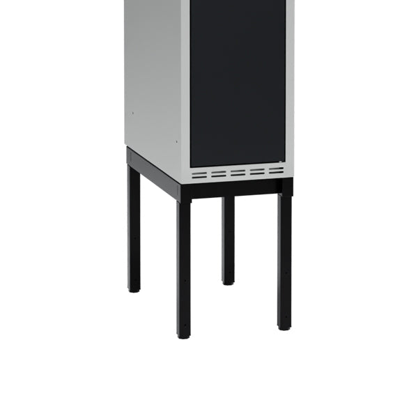 Understellet er tilpasset skabe med en dybde på 550 mm og en bredde på 300 mm, og er beregnet til ét skab placeret i en enkelt række.