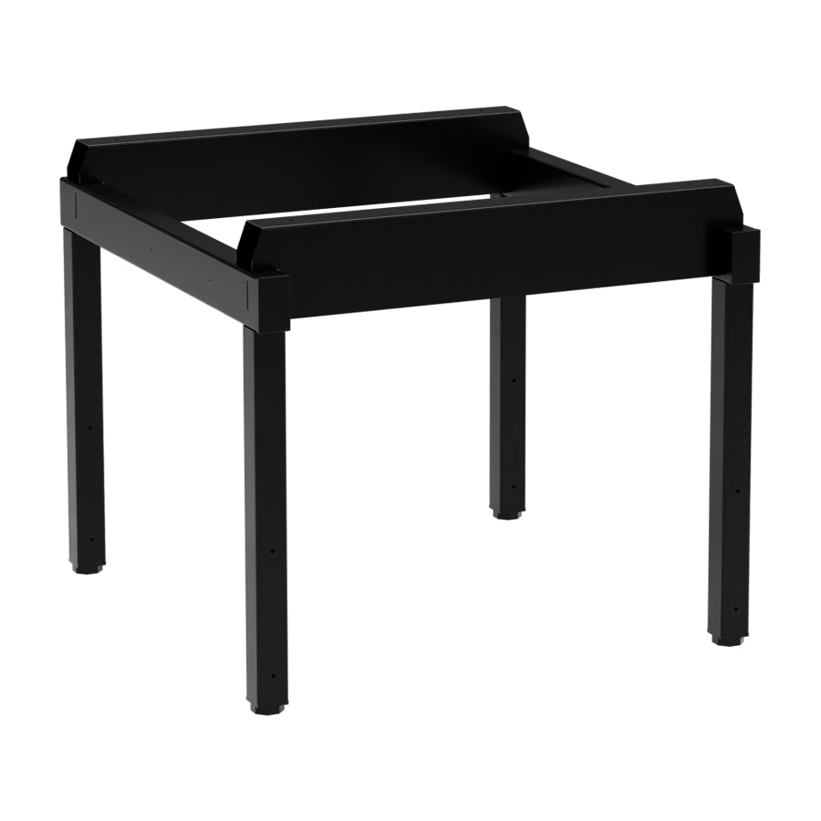 Høj benramme med en bredde på 500 mm og en dybde på 550 mm. Benrammen leveres med justerskruer til ujævne gulve, i sortlakeret udførelse, og monteres nemt – helt uden brug af skruer. Benrammen har en højde på 320 mm, som kommer oveni skabets højde.