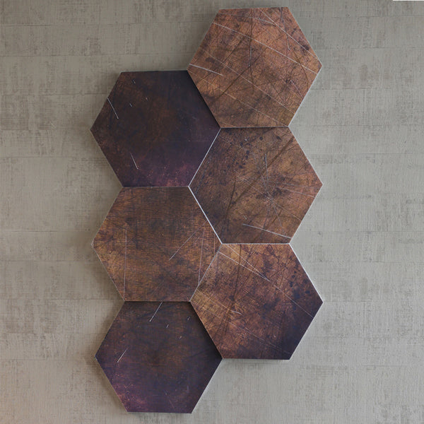 Denne udgave af den lyddæmpende vægabsorbent Honey, har grå EcoSUND kernemateriale med trykt, natur inspireret mønster Rust. Alle panelerne i et sæt, har samme motiv, men uden mønstermatching og med forbehold for mønstervariation.