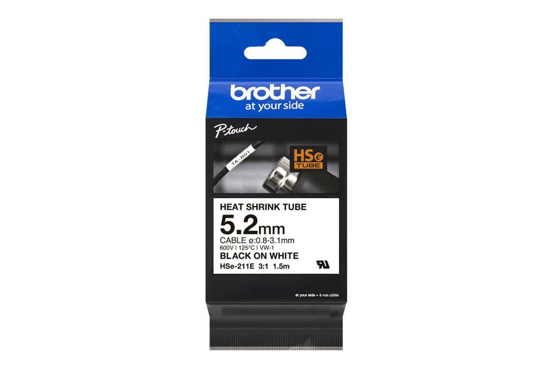 HSe-211E sort på hvid krympeflextape – 5,2 mm